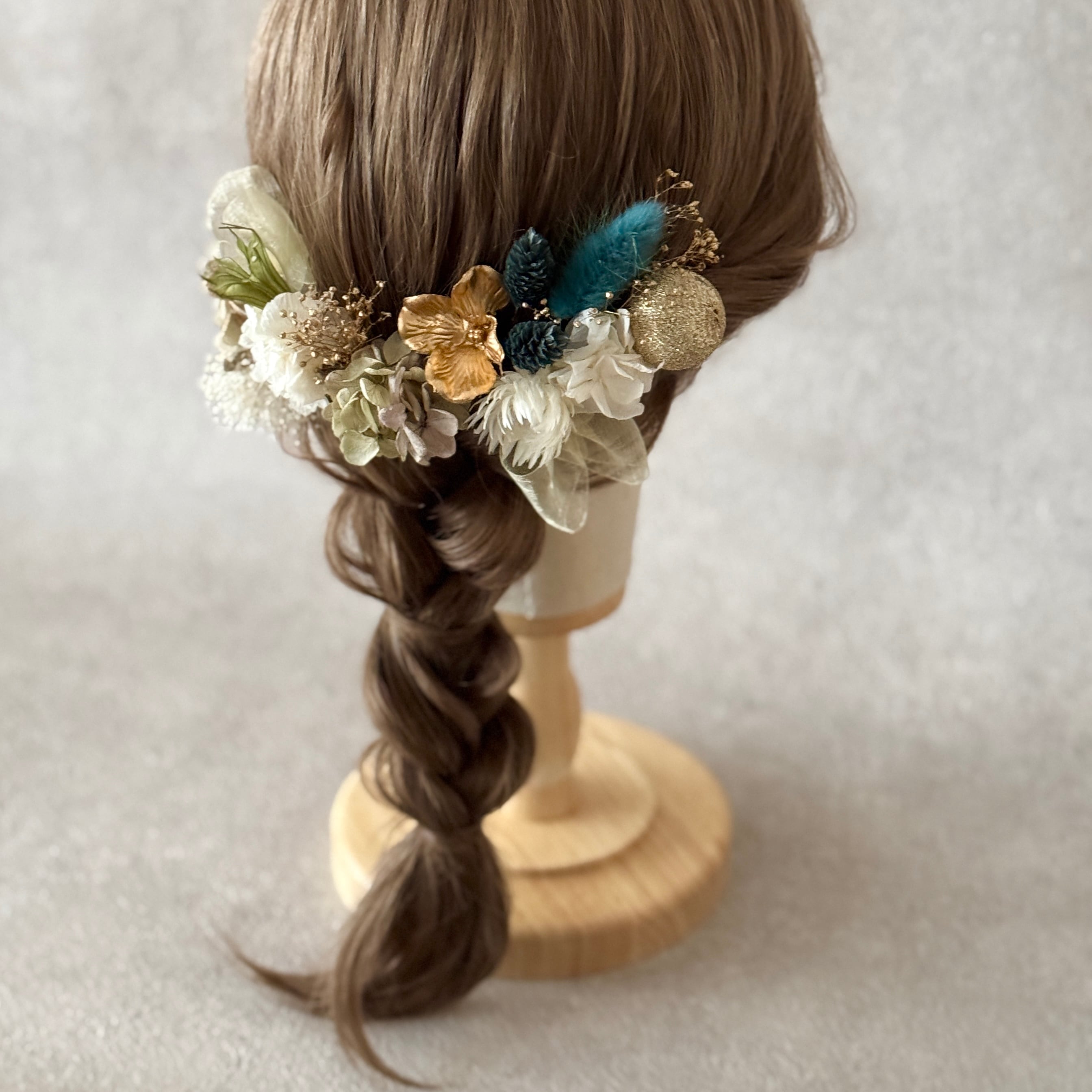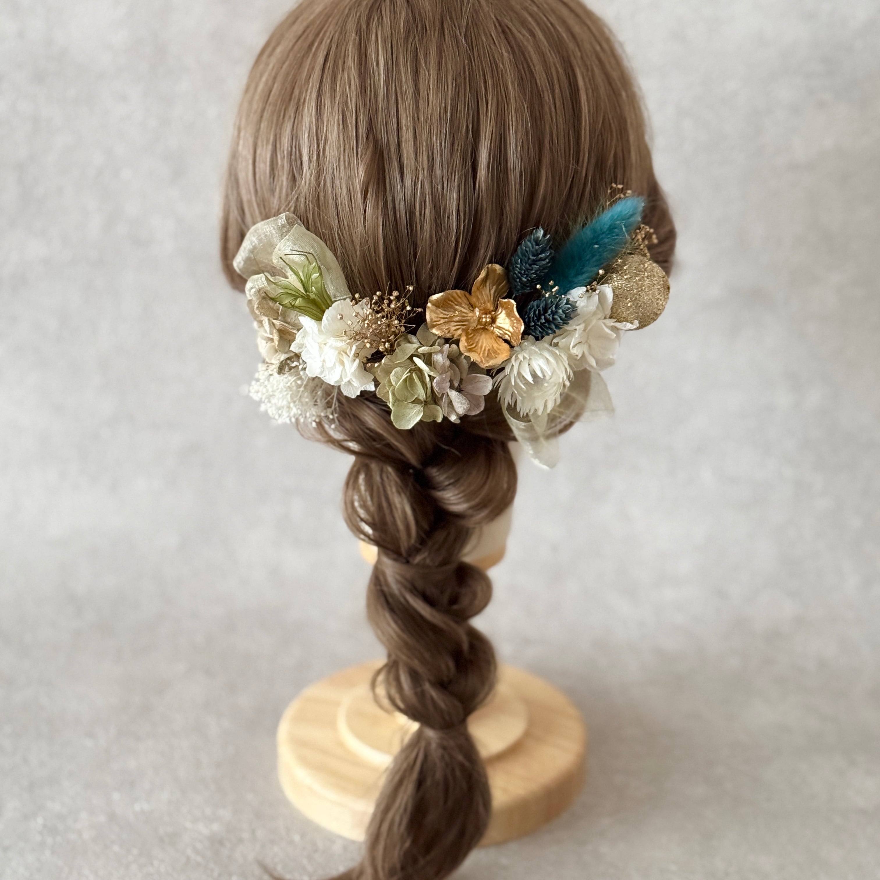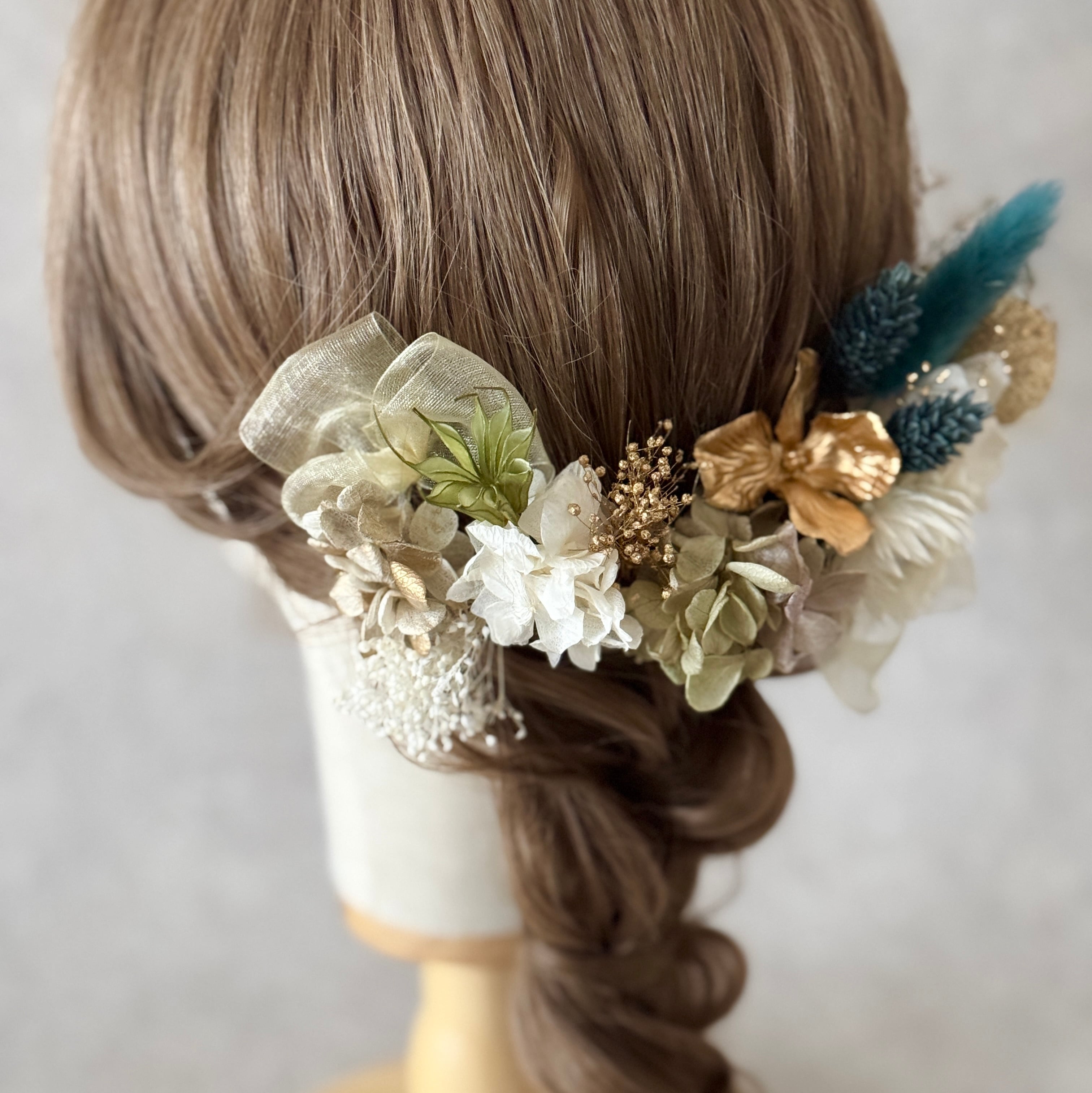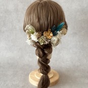 ターコイズグリーンの髪飾り✲ 成人式髪飾り 卒業式髪飾り 結婚式 ヘッドパーツ ヘッドドレス ドライフラワー髪飾り ヘアアクセサリー 和装 振袖 袴 和装 緑