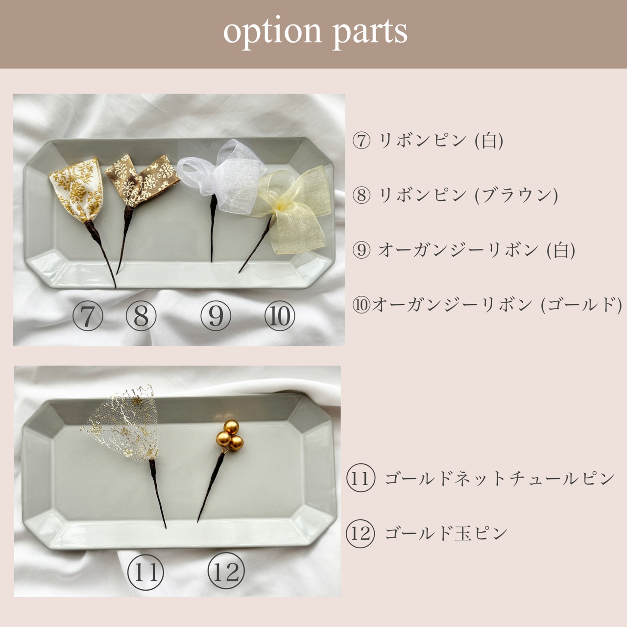 1本1本のパーツにしておりますので、様々なアレンジにもお使い頂きやすいようになっております。