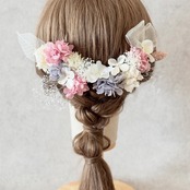 プリザーブドフラワーなどを使用しており、本物のお花の素材感もしっかりと感じて頂けるので、花嫁さまや、卒業式・成人式にもぴったりです◎