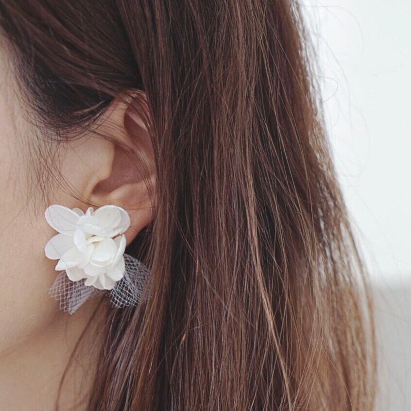 Flower pierce with tulle ✲結婚式 ブライダルピアス フラワーピアス 花ピアス