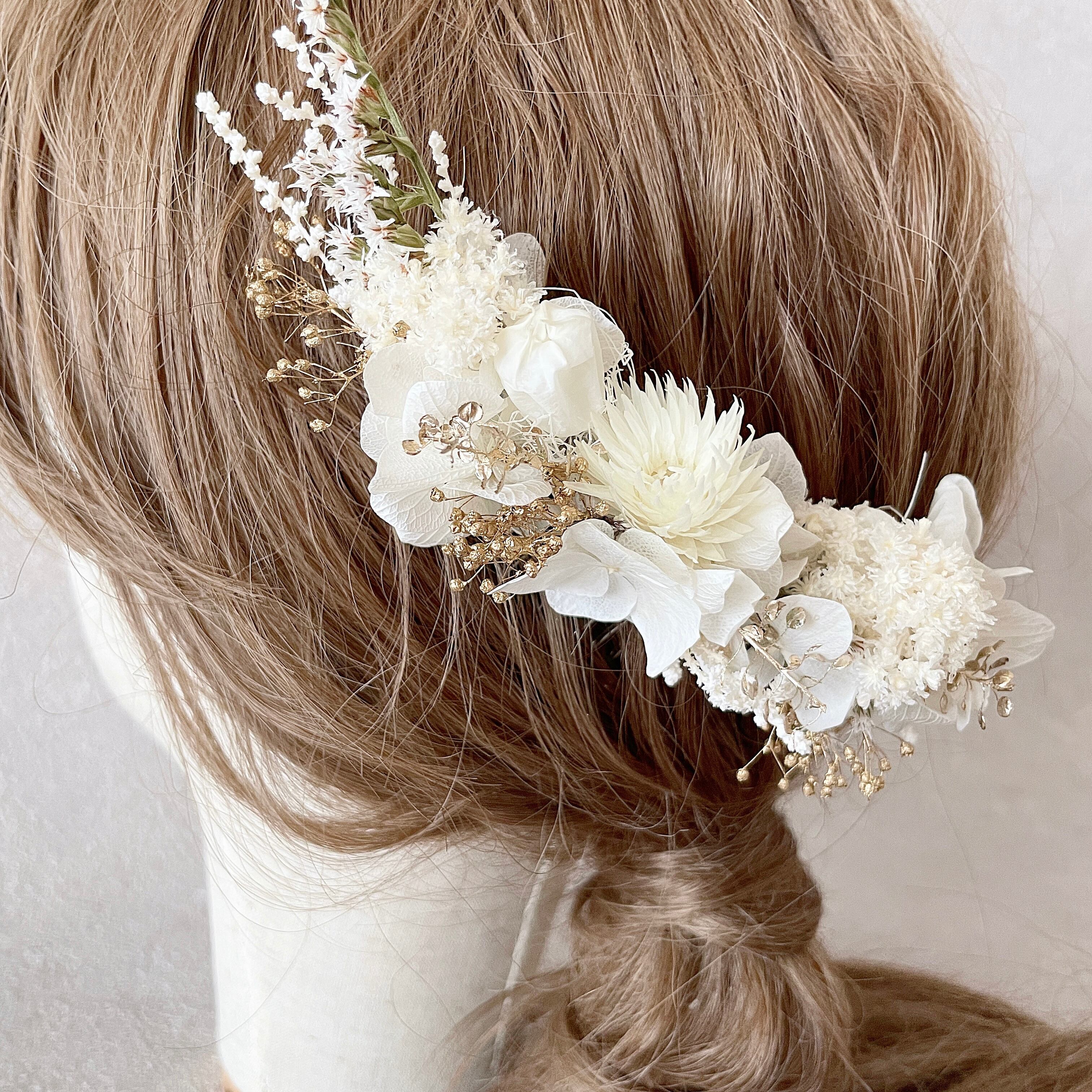一瞬で可愛く。アンニュイなホワイトのヘアコーム✲/ウェディング 卒業式 成人式 振袖 着物 袴 髪飾り 七五三 ヘッドドレス プリザーブドフラワー お洒落