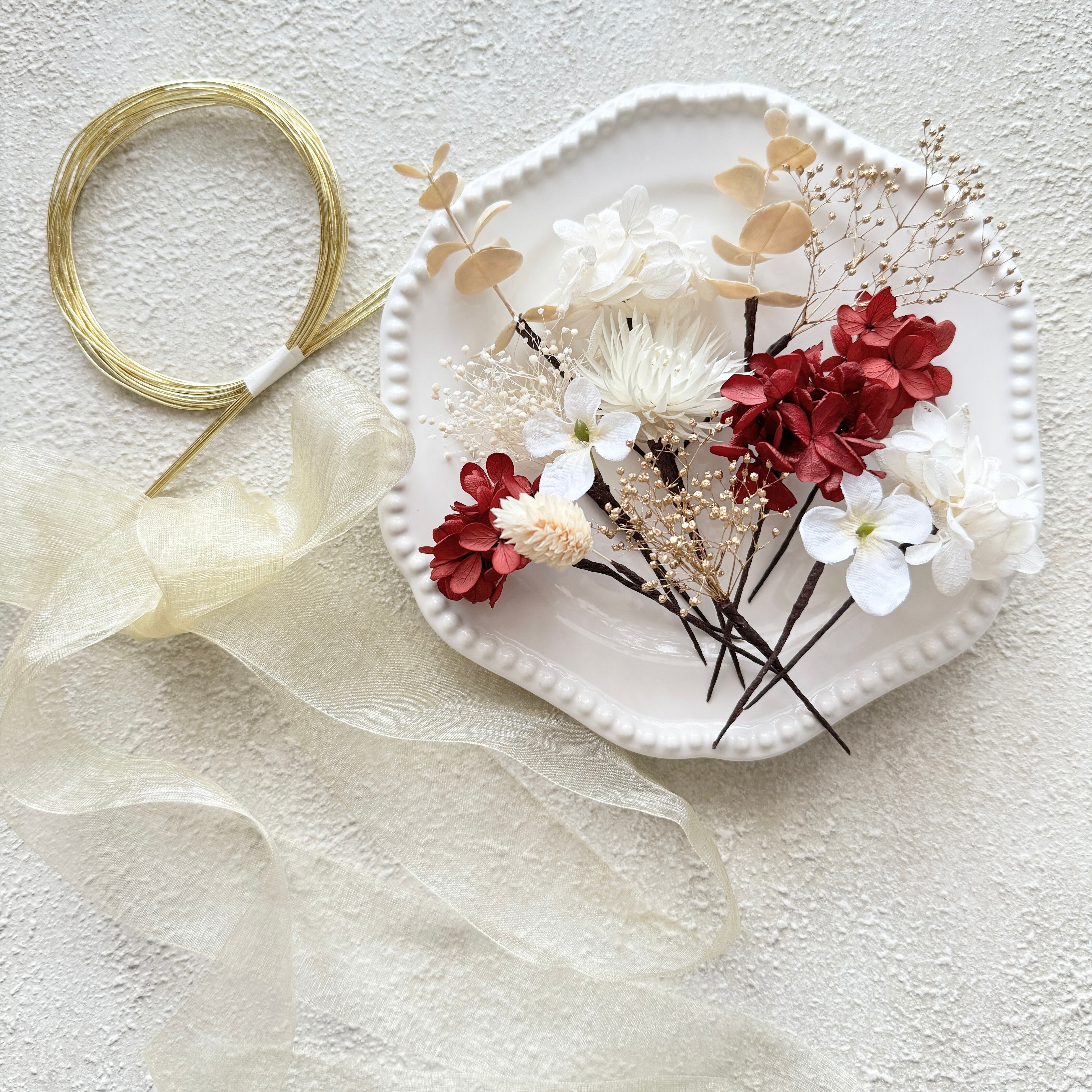 大阪に店舗を構える、フラワーショップが手掛ける、ドライフラワーとプリザーブドフラワー等を使用したヘッドドレスです❁