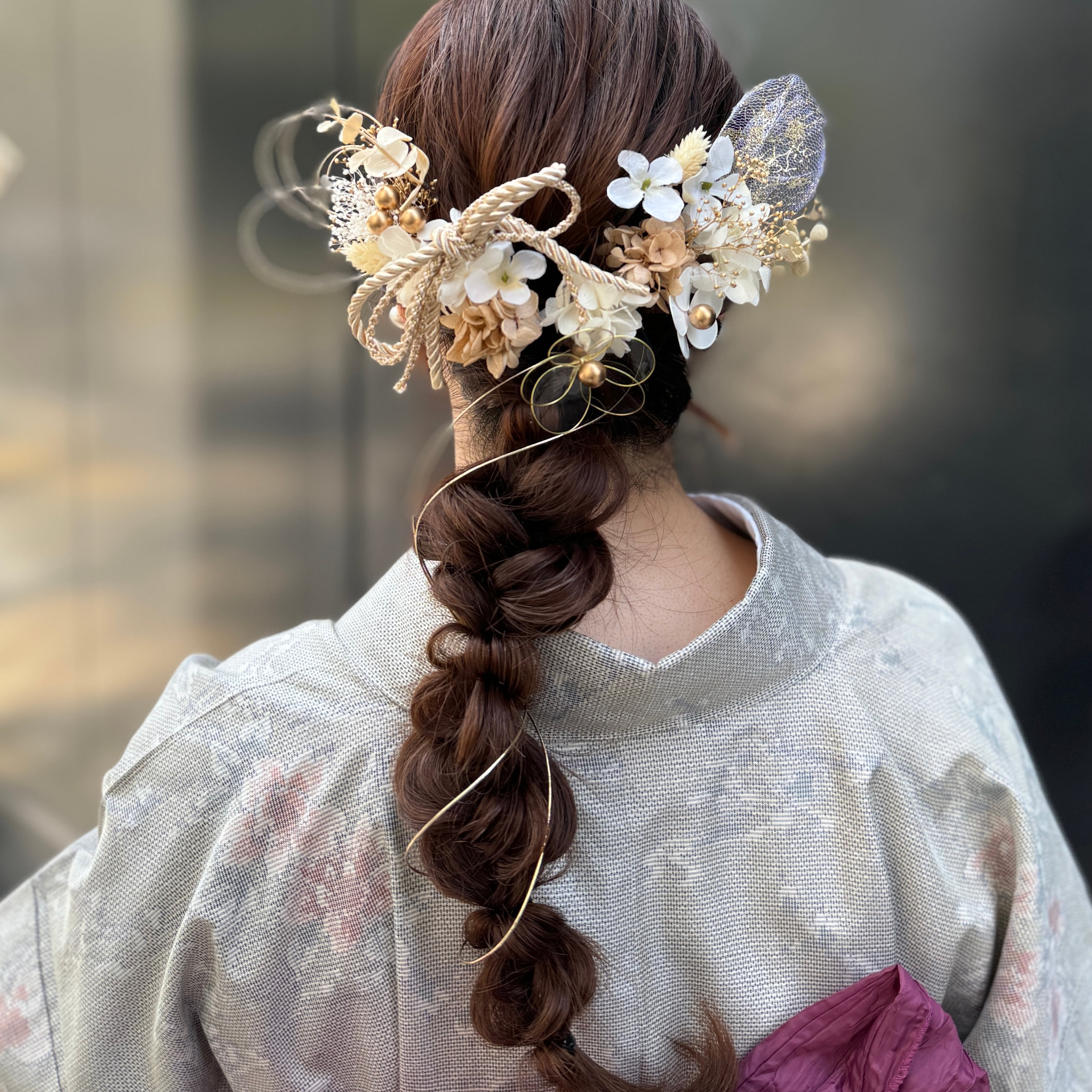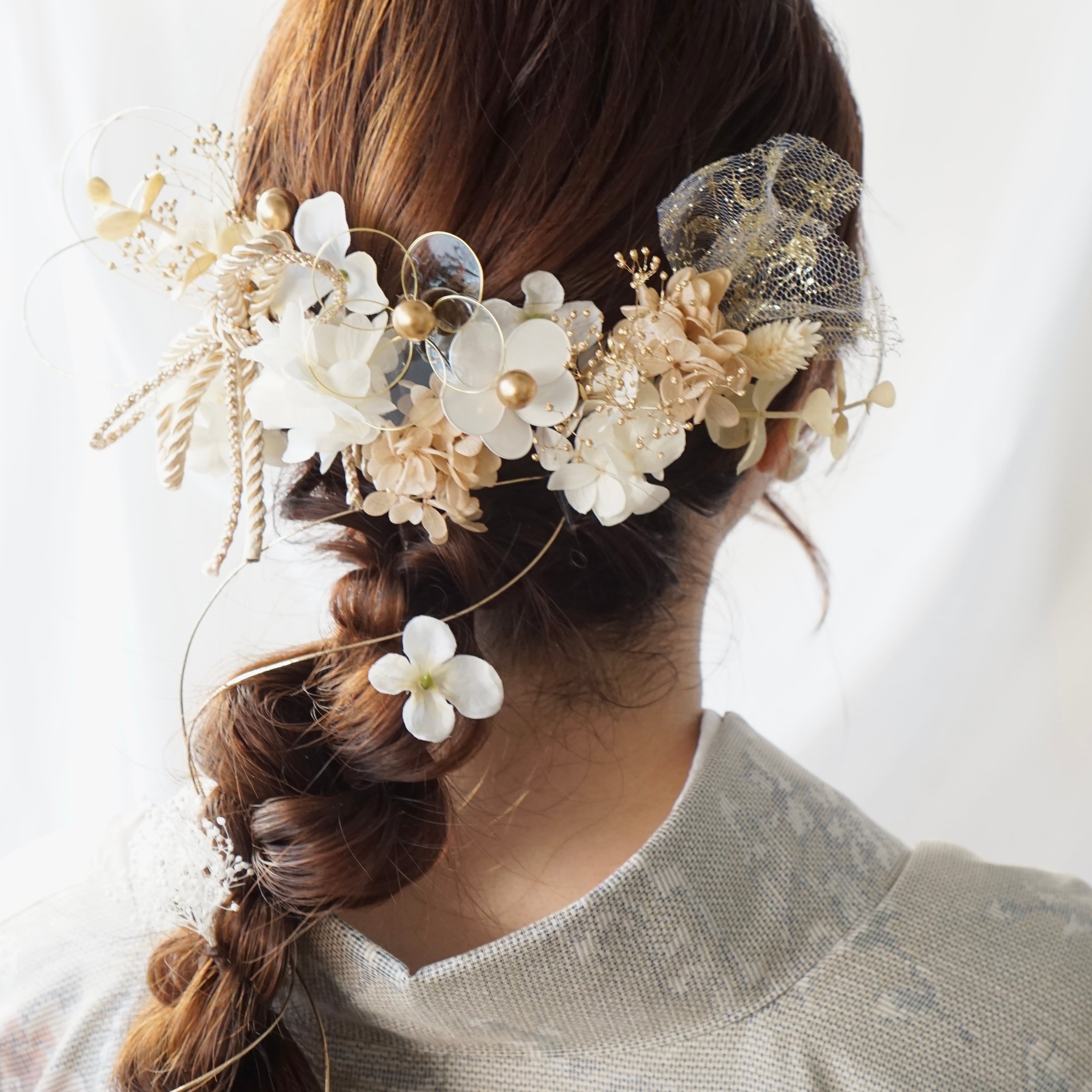 和紐のリボンや、ゴールドのネットピンで更に可愛く♡