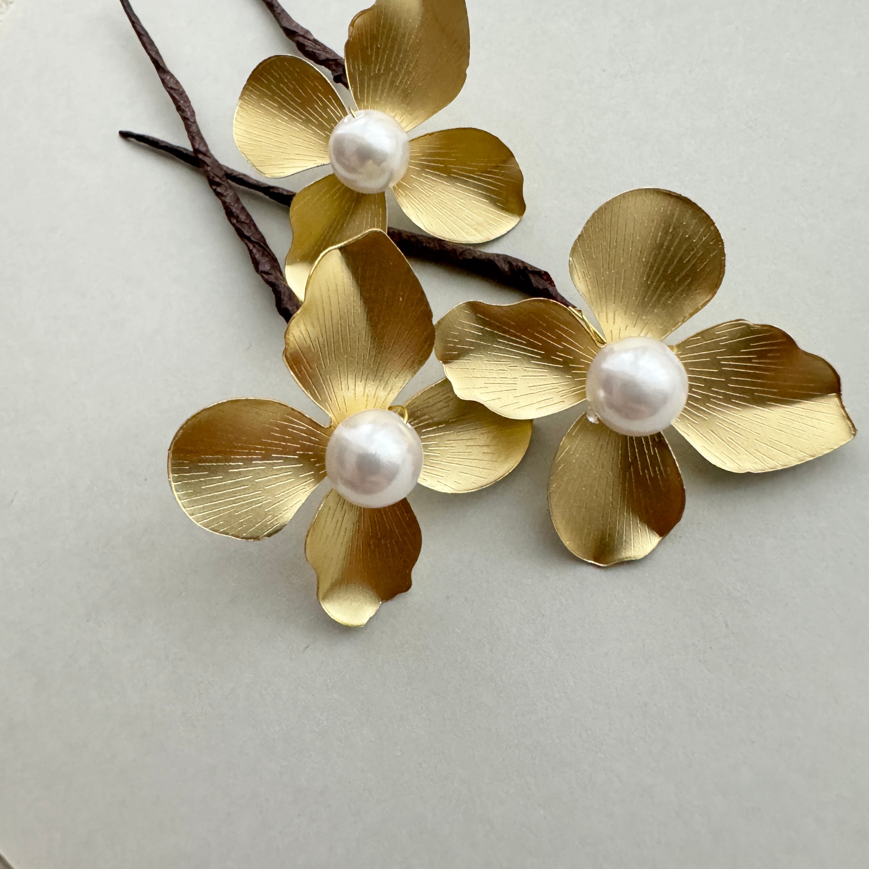 petit マットゴールド×白の髪飾り✲ 成人式髪飾り 卒業式髪飾り 結婚式 ヘッドパーツ ヘッドドレス ドライフラワー髪飾り ヘアアクセサリー 和装 振袖 袴 白無垢 メタルフラワー お呼ばれヘア